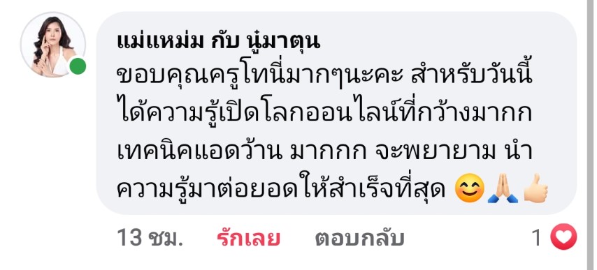 ความคิดเห็น K.แหม่ม เจ้าของแบรนด์ครีมกันแดด LIVE Thailand : สำหรับวันนี้ได้ความรู้เปิดโลกออนไลน์ที่กว้างมากเทคนิคแอดว้าน มากก"